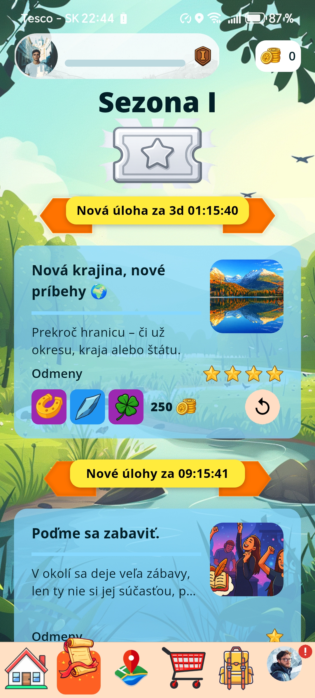 Aktivuj úlohu, prejdi trasu alebo navštív lokalitu, získaj XP a predmety do inventára.